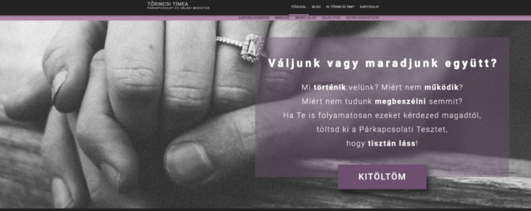 Timi nagyon konkrét elképzelésekkel keresett meg minket, pontosan tudta mit akar. A vizuális megjelenésben is azt a fajta személyességet, intimitást és bizalmat erősítjük amit ő képvisel. A sötét háttér megfelelő komolyságúvá emeli, a lilás árnyalatok pedig nőiessé és elegánssá teszik az oldalt, ami tőlünk megszokott marketing szemlélet szerint épül fel.